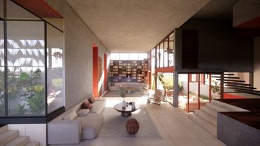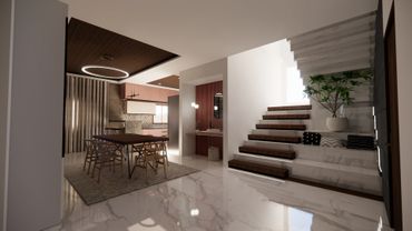Elysia House:This residential house, with a built-up area of approximately 4,500 sq.ft, is designed to bring together modernism and luxury in a seamless architectural expression. The design focuses on clean lines, open spaces, and a refined material palette that reflects contemporary aesthetics while ensuring comfort and functionality. Every element — from spatial planning to façade treatment — ai